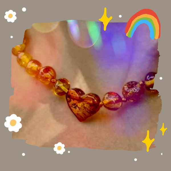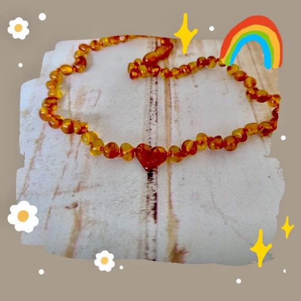 Collar Ambar original color cogñac, con corazón de ambar en el centro. Cierre a rosca hipoalergénico. Medida 38cm