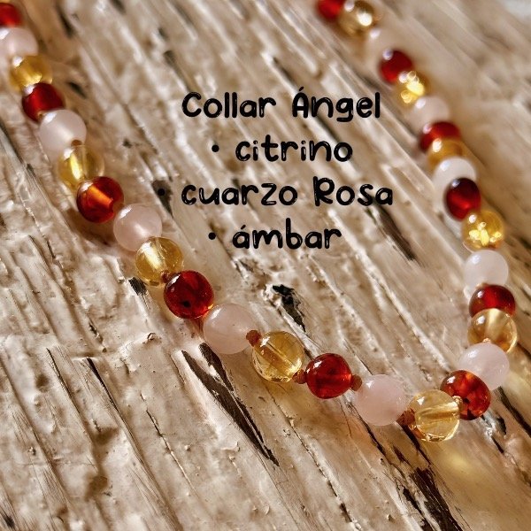 piedras: cuarzo rosa, ámbar color cogñac, citrino.