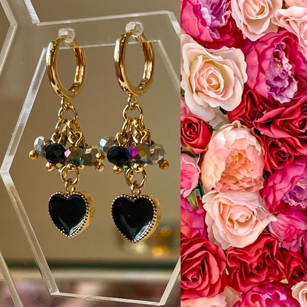 Aros colgantes con cristales y dije corazón esmaltado. Calidad GOLDFILLED