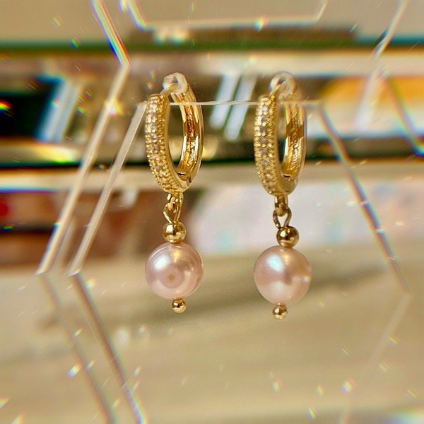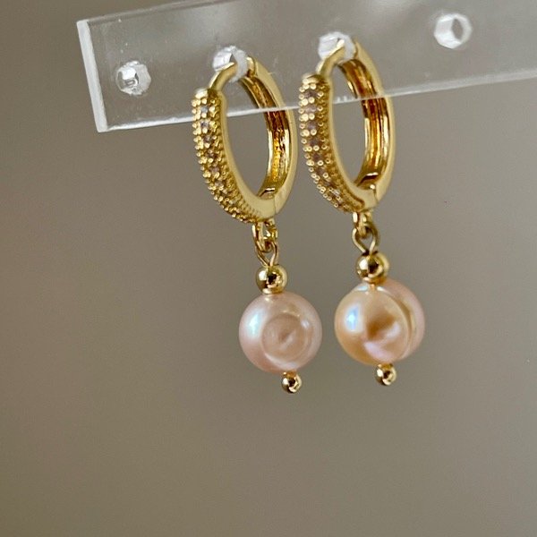 Aros con perlas colgantes. Brisura con el frente de microcircones. Calidad GOLDFILLED