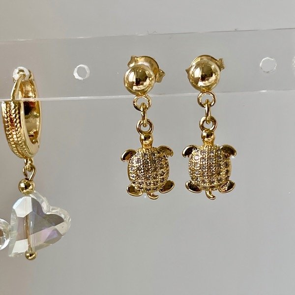 Aros on dijes tortugas colgantes con frente de microcircones. Calidad GOLDFILLED