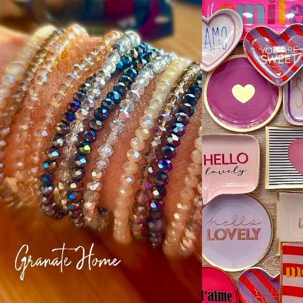 Pack de cinco pulseras elásticas de 17cm. Materiales: cristales
