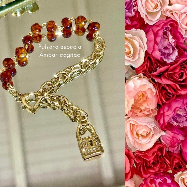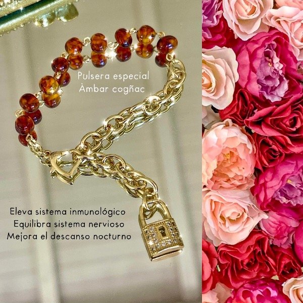 Pulsera con ámbar original, con cadena y dije candado con microcircones. Cierre marinero calidad GOLDFILLED. @granatehome