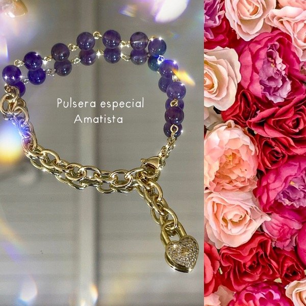 Pulsera con piedra natural amatista. Cierre y cadena calidad GOLDFILLED