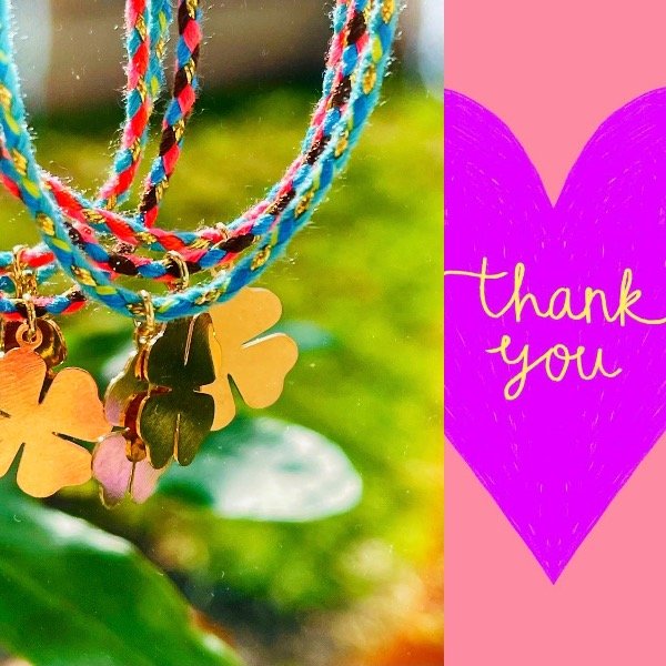 dos pulseras artesanales de hilo trenzado con medida regulable, con dije trébol cuatro hojas, dije calidad GOLDFILLED